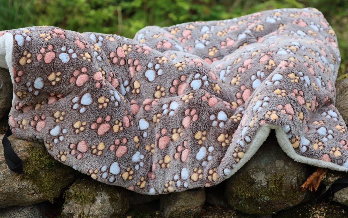Mjuk vändbar pläd som med fördel kan användas till Ergobed/Kuranda - med elastiska band som håller den på plats.